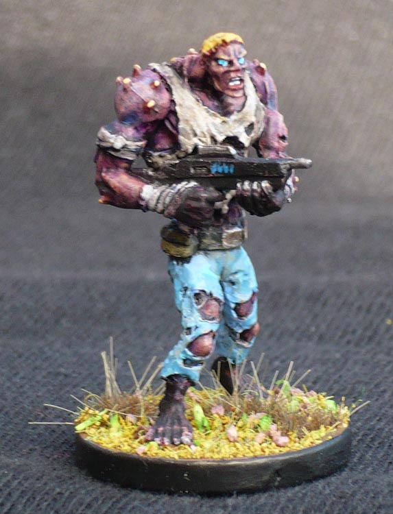 I started with the 3rd gen humans to establish the look, and the dogs for simplicity. I must say I can’t stand the garish pink of the “official” colour schemes. I imagine the infected grow/mutate in big spurts, and have tried to show this by making them look more like they are entirely covered in massive bruises adn blemishes, with varying success. Blackish hands and feet for the gangreneous effect. Maybe the faces should stay more unblemished as they do not seem to have grown or disdended to any large degree?