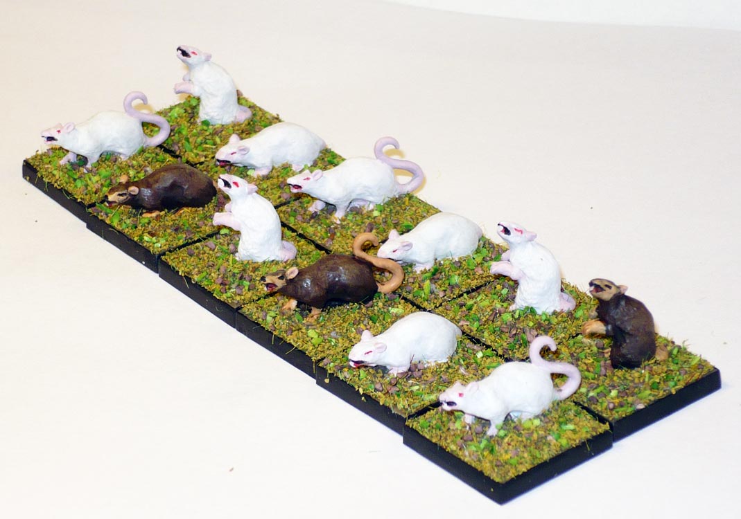 First the Reaper Bones 77016: Rats. 12 of them to be precise. These are cute little critters. Until you notice that they are the size of rather large dogs…and they are many, A shotgun only kills one at a time!