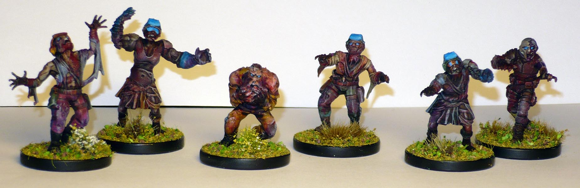The second blob of minis off the shelf today is 12 more of the Mantic Sci Fi Zombie Space Hurps conversions: