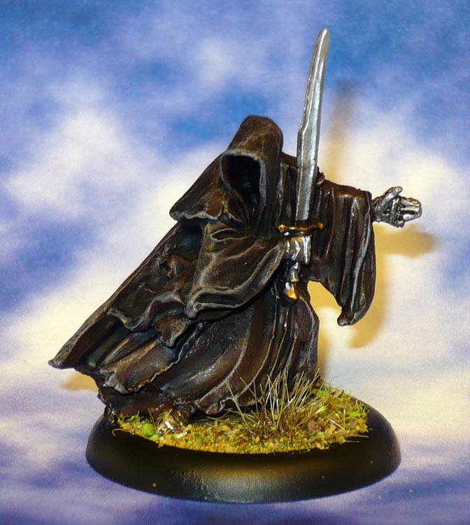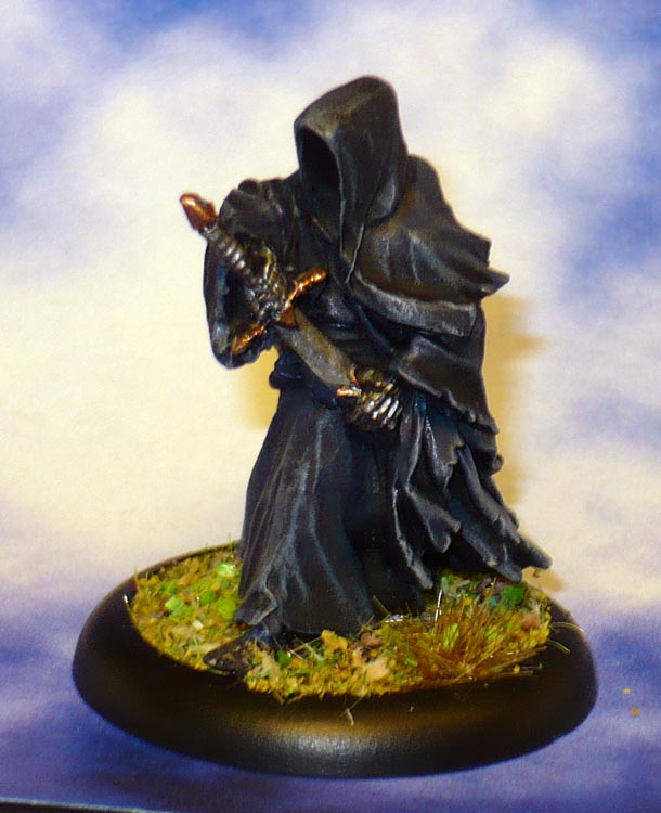 I have a really nice black cloaked figure lined up for painting, but painting it straight black will not do it justice. So I am using some Ringwraiths from Lord of the Rings by Citadel as guinea pigs: