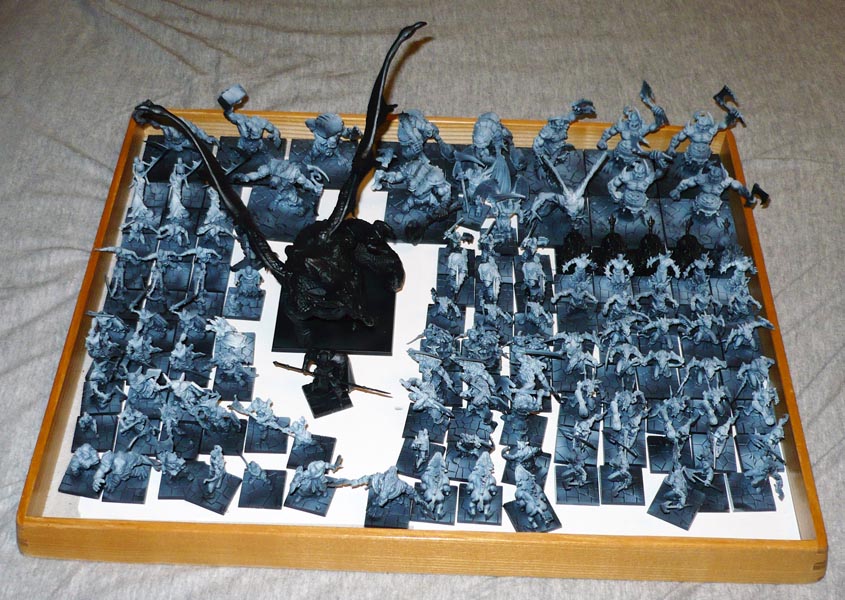 so best to get them done once and for all. Some Trolls, Lesser Obsidian Golems, Goblin Fleabag riders, Dwarf Brock Riders and resin Earth Elemental. Just needing some primer and a bit of basing.
