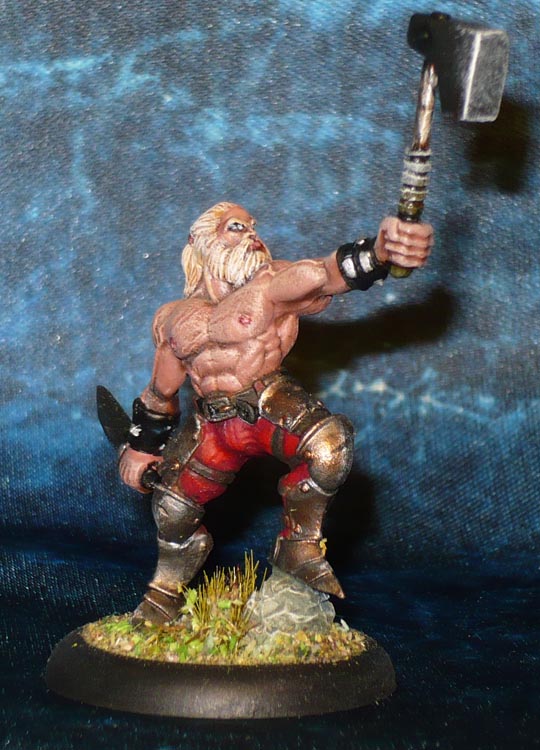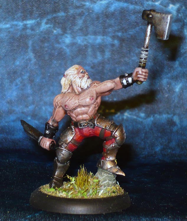 Striking the classic heroic pose known as “foot on rock”, Brok is the sixth Circle member, with his trusty Sigmarite warhammer held high.