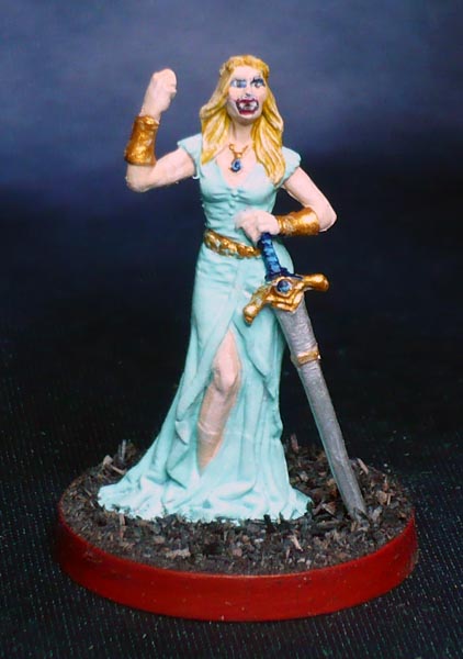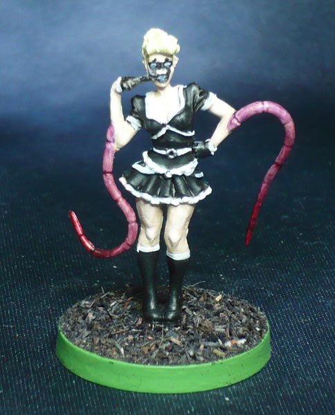 Not entirely happy with Morganas face. As she is an ancient vampire, I tried to show her fangs. Probably used too strong colours, should have kept it really muted on such a small face. It looks painted on. On the other hand, that face is really small and difficult to paint.