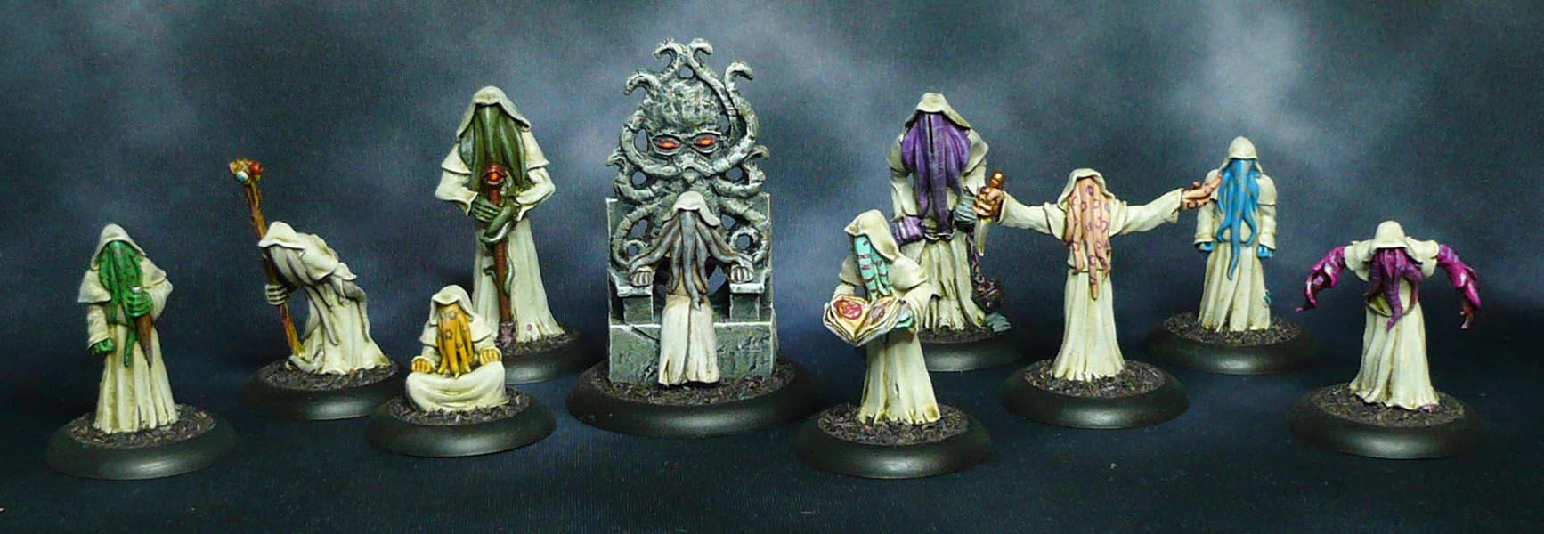 One and a half quick and dirty paint sessions later, we have the core of the cult ready for action: