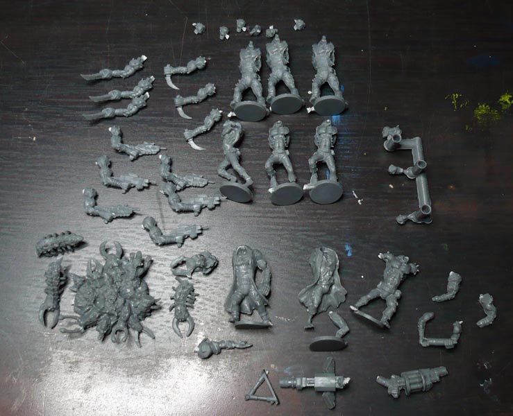 Three identical packs each of two dogs and two 3rd gen troopers; and a pack of 3 3rd gen heavy weapon troopers and a plague swarm.