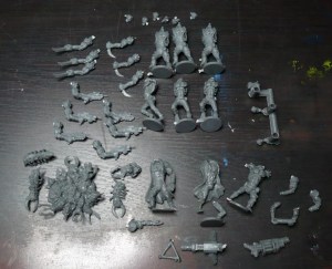 Immediately visible was a few sprues of KoW plastics and a crapload of those little plastic baggies with grey and red bits in them. No surprises there…