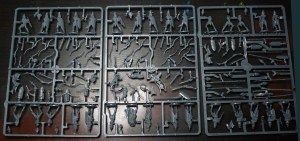 30 Elves, consisting of a sprue of 10 each of Bowmen Command, Bowmen Troop, and Spearmen Troop. Plus 3 casualties and a big cat. Good quality details. As long as you accept the reediness of the stick-thin elves. I would have preferred them to be larger, but all in all don’t mind this aesthetic, so this is OK.