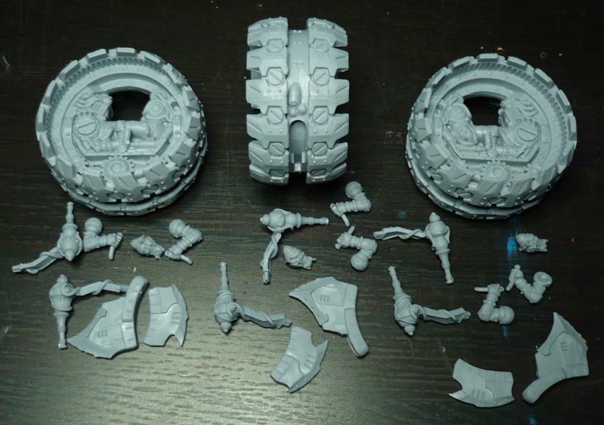 GBP 99.99 for the new Warpath rulebooks and 126 more or less random miniatures across several lines (138 including casualties, half-skeleton, imp, cat and dog. plus some parts for the bits box and 24 Dreadball bases.) Of this there are 4 smaller warpath vehicles and a Burning Cattle.