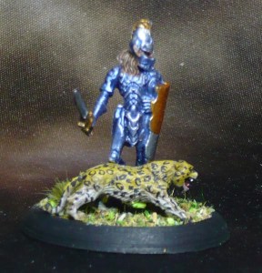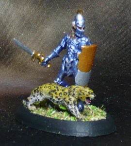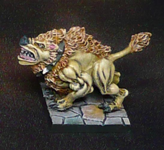 When I originally looked at the sprue, I did not see that the big cat was to be on the same base as one of the champions. This became apparent when I built them, though. But my small 20mm round bases were not wide enough for the cat’s stance.