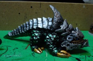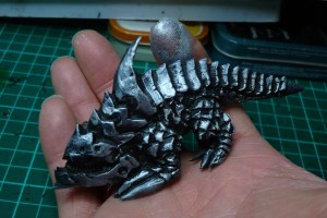 This was followed by a highlight of Army Painter Shining Silver on the ridges and main plated of the head and tail, taking care to not cover up all the Heavy Metal.