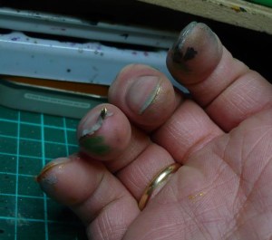 In preparation for this, I have let my fingernails grow a couple of weeks…since my fingertips are way to big to get at any details at all…but a fingernail, both edge and torn, does the trick!