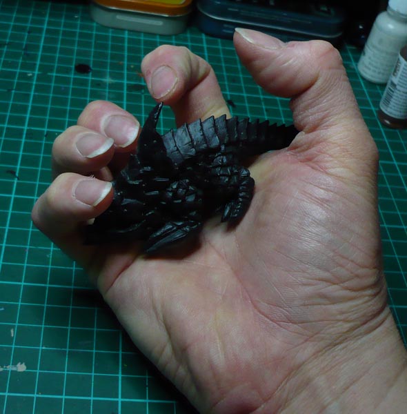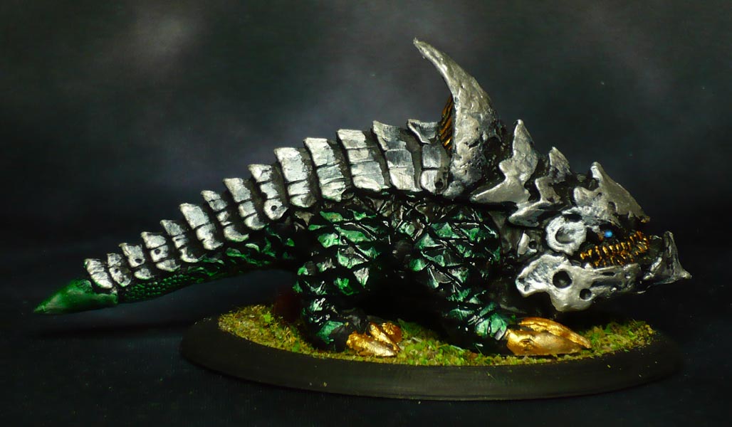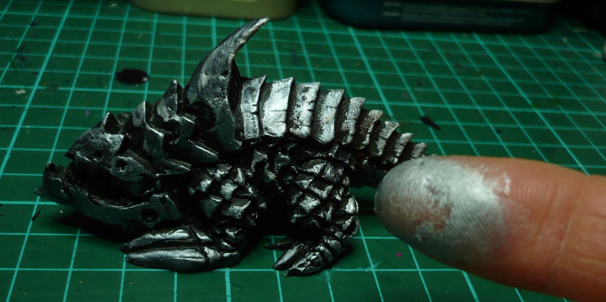 This was followed by a highlight of Army Painter Shining Silver on the ridges and main plated of the head and tail, taking care to not cover up all the Heavy Metal.
