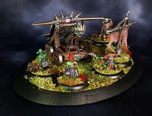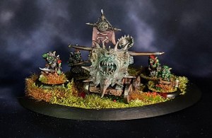 Two of the goblins, number 2 and 3 from the left, are slightly converted from infantry to be crew, as the artillery set only had 3 crew originally. All are still Crooked Claw, though.