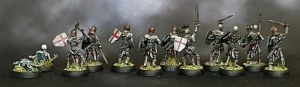 I already have (the start of ) an Undead Army for Kings of War called the The Lost Crusade themed slightly along the lines of Templar Knights with white robes and shields featuring red crosses.