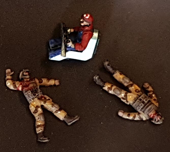 And for last, the two human soldier casualties and the mechanic as pilot. The part fits in the Martian Saucer and also the Big Stompy Robot. Just need to get round to painting those up…