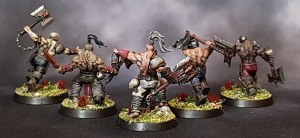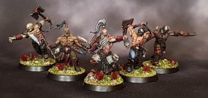 Garrek’s Reavers, the Khorne Bloodbound squad of angry, blood-crazed bullyboys. Five of them as opposed to the three Cybermen Stormcast Eternals.