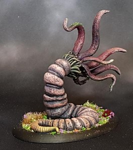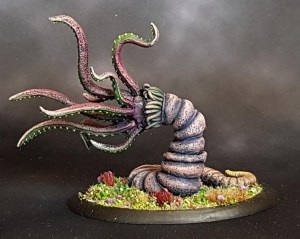 This is an old metal Cthonian aka Carnivorous Worm, from the Call of Cthulhu line made by RAFM co. I bought it back in the day, and for some reason I thought it would be appropriate for the Old School Painting Party. I entered is as since we used many of the Call of Cthulhu minis in our AD&D campaigns back then, as I thought of it as an old school fantasy mini. Of course, it is not actually a fantasy mini so it got pulled. Which is fair enough and perfectly fine by me, as I already had entered other minis and now there was more room for another entrant.
