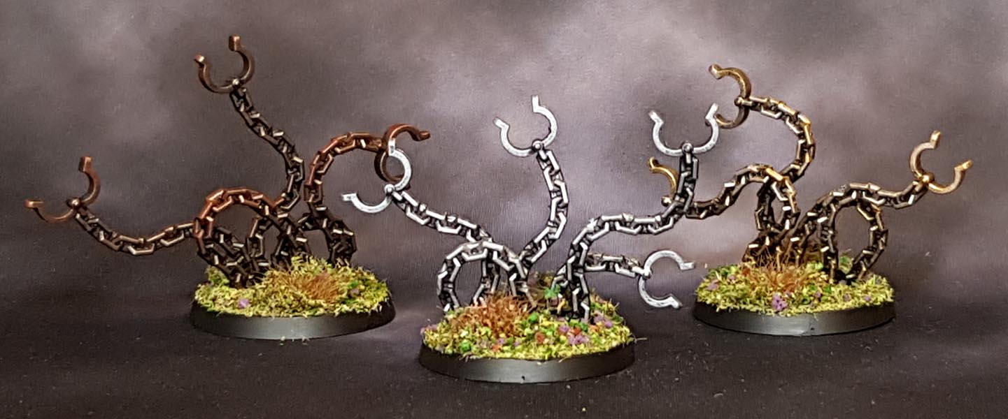 Probably the simplest of the spells to paint. One in bronze/brass, one in brass/gold, and one in steel/silver. Bases and done.