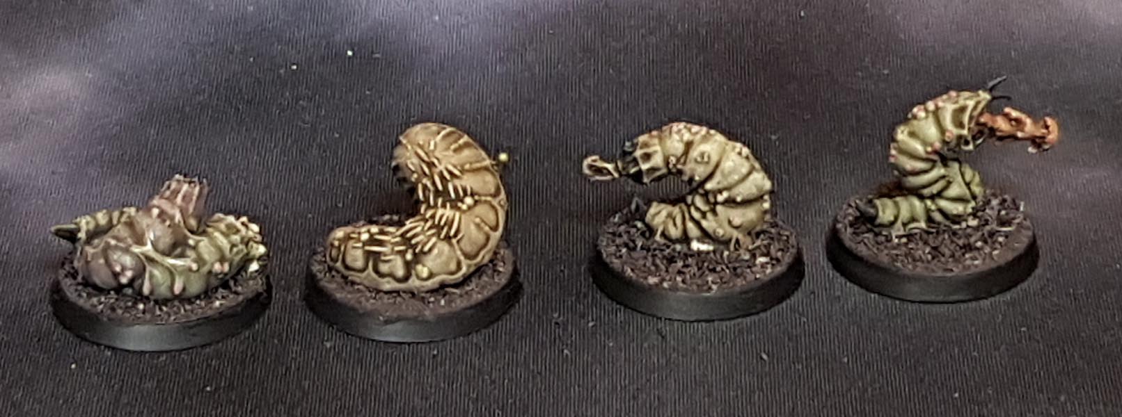 “Small” writhing maggots who attack with fanged maw, stinger and acid spit