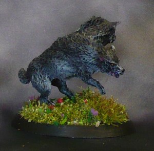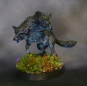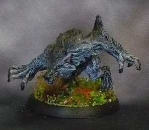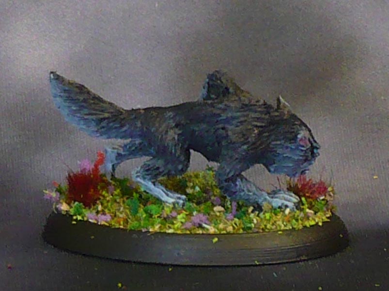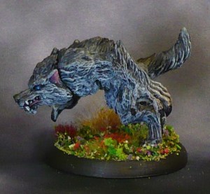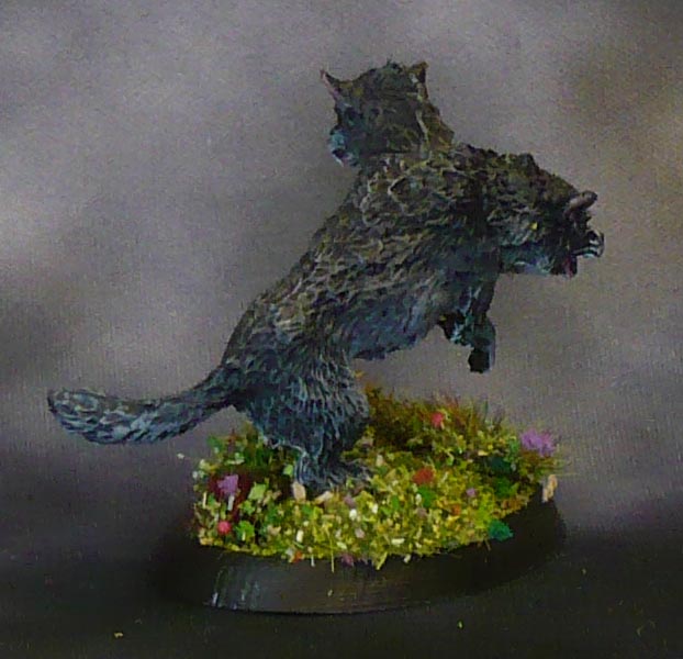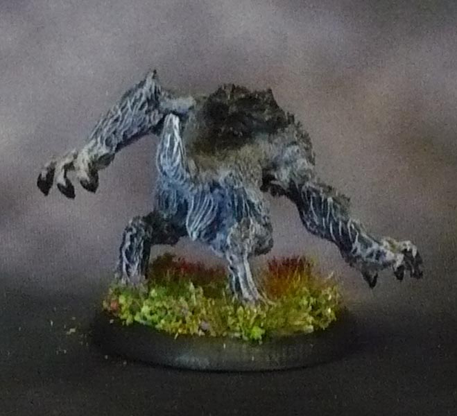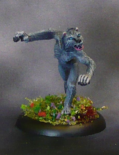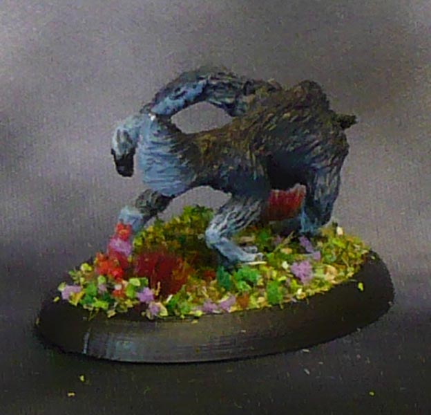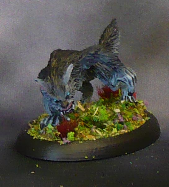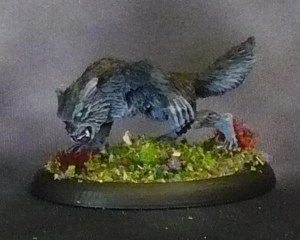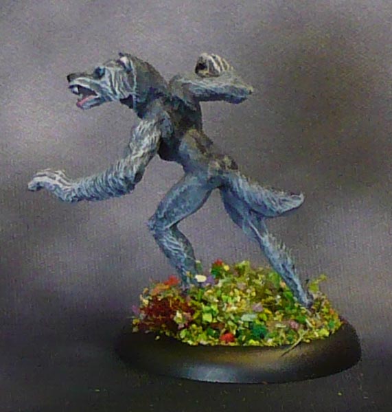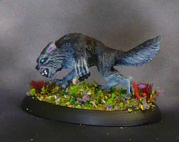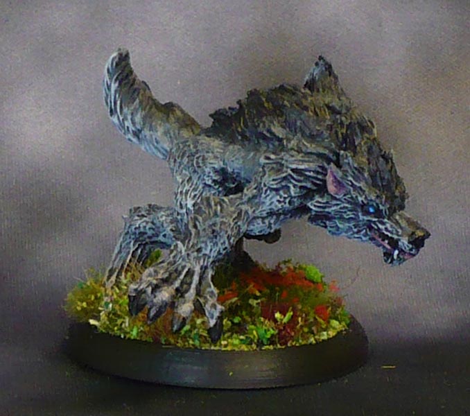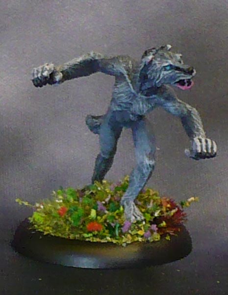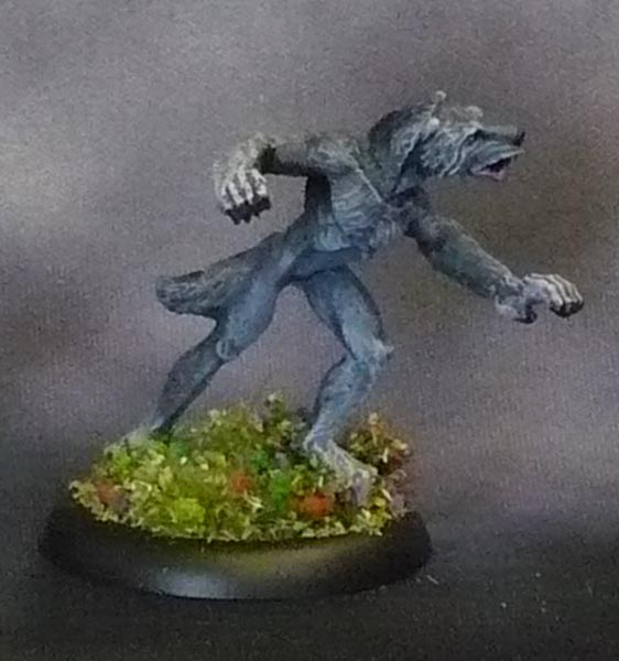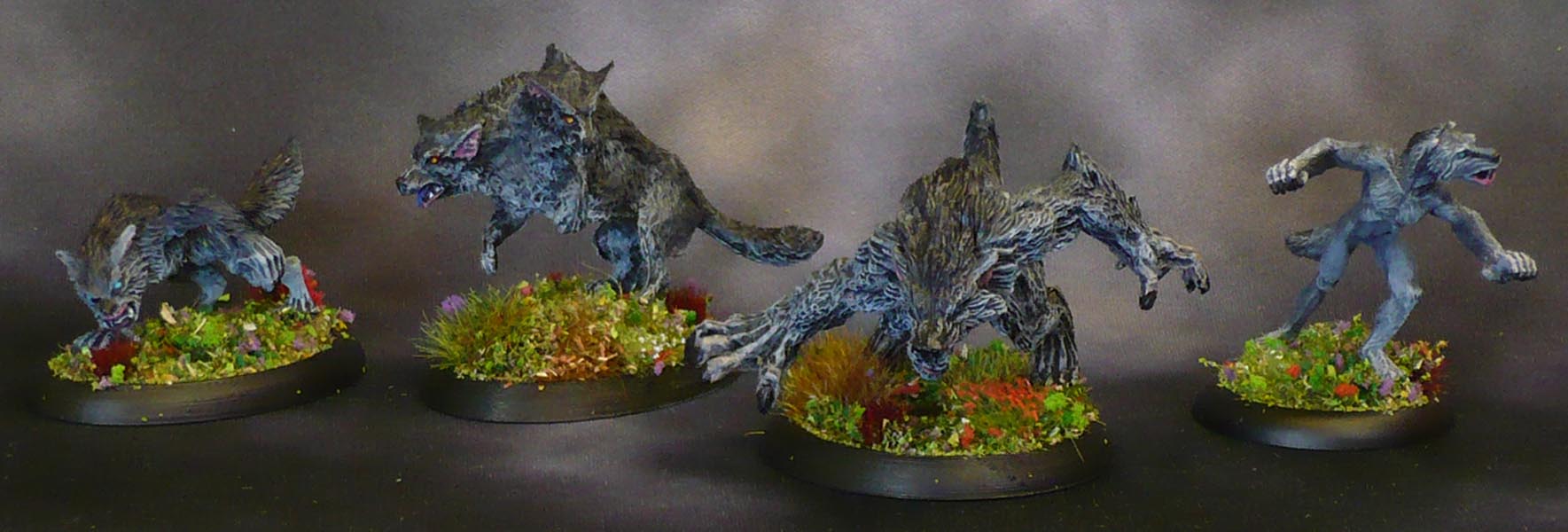 In the spirit of getting things done, I have just been grabbing some minis off the Trays of miniatures I am going to get round to any day now oh yes for sure that definately is going to happen to paint in parallell with other stuff where I use the same colours. This time I did some more werewolves (and a death dog).