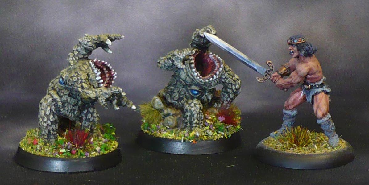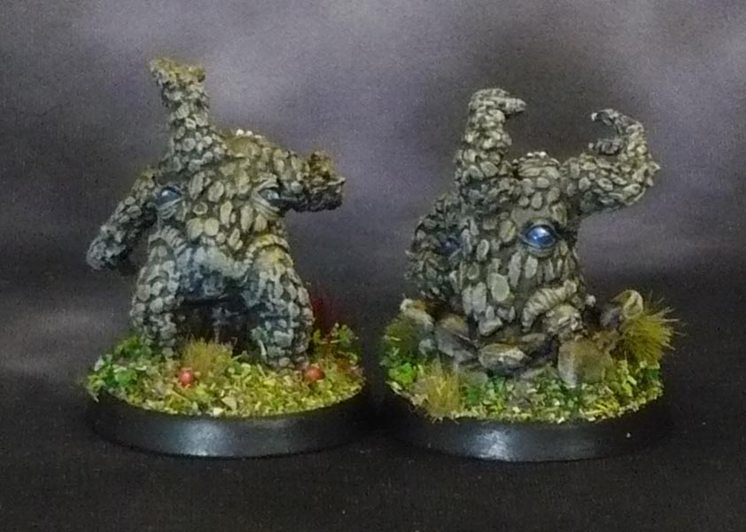 Here are Xorn, the three-legged three-eyed earth elemental with a massive maw! There are two to a pack, and I think they are supposed to represent a low-level and a high-level version. However, they are the exactly the same size, so who can tell the difference in power level?