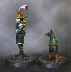 Elucia Vhane the Rogue Trader, with the Voidsmen’s Canid Aximillion