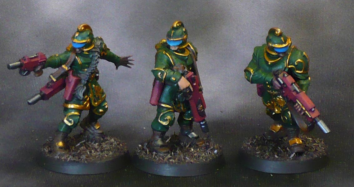 I went for a House Atreides look to the uniforms (Green with red and gold trim, inspired by the production design of the 1984 David Lynch Dune movie, which I am sure also has inspired many people working at GW, influencing the look of the Warhammer 40.000 universe in many ways.)