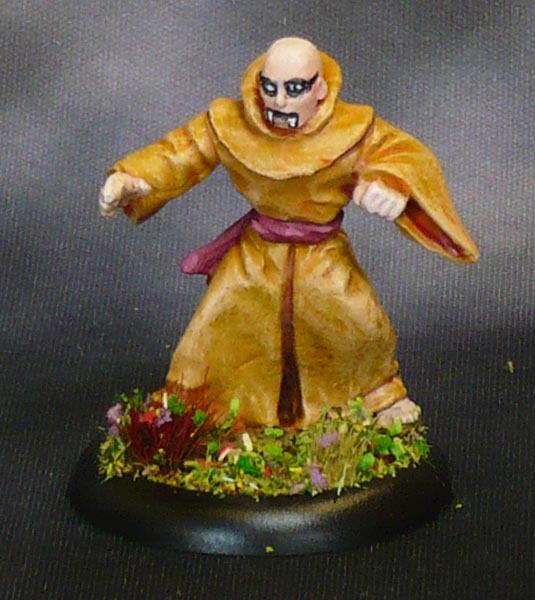 I saw this mini as some sort of Vampire Shaolin Monk, hence the undecorated yellow robes.