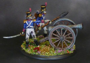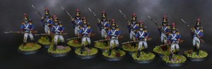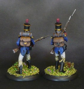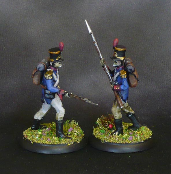The paint scheme is loosely modelled on the Garde Impériale of Napoleon I with blue coats, white trousers, black hats, red plumes and gold details.