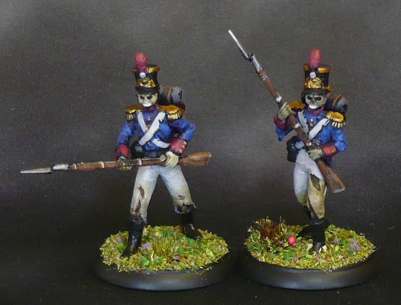 I prefer them to be French and imagine them to have been campaigning through some sort of hellish otherworld that sucked the life out of them but left them animated.