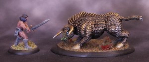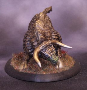 Even though the Gorgon is described as iron, in that it can be rusty, I did it in bronzey brassey colours. I gave it a bit of green around the muzzle to look like some residue from it’s halitosis.
