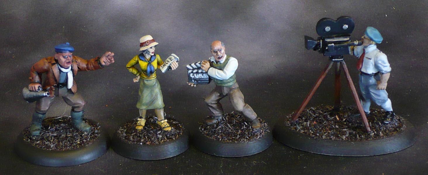 I originally had done another group of minis for this round, but they were a bit lackluster and the photos did not turn out too well. Then I chanced upon the film crew minis which sparked off some ideas for a scene for the team. I will keep the aforementioned team in reserve for now.