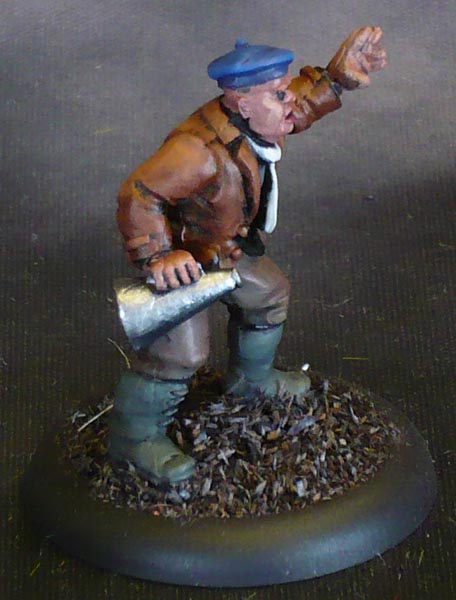 Billy Boyle the Clapper. I based his colours on Wallace. I gave his bald dome a bit of shine with gloss varnish. 25mm base.