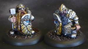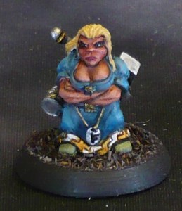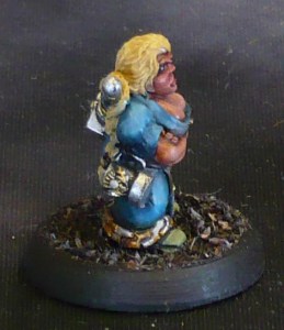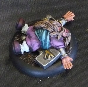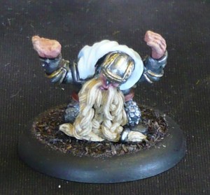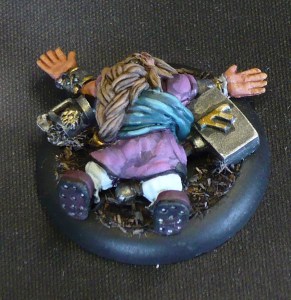 Our unnamed protagonist, the long-suffering and literally downtrodden shieldbearer. This model is from the 2013 Oathsworn Heroes kickstarter’s Dwarf King set.