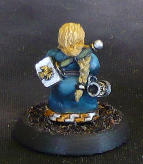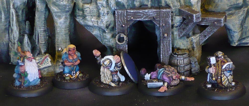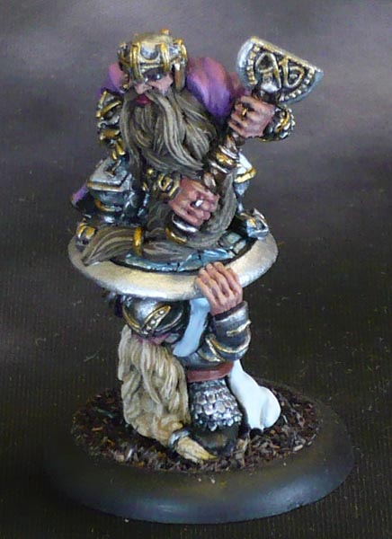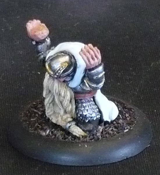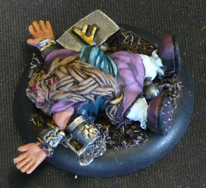 Our unnamed protagonist, the long-suffering and literally downtrodden shieldbearer. This model is from the 2013 Oathsworn Heroes kickstarter’s Dwarf King set.