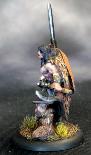 The metal version is called Arnise, Elven Sergeant from the Warlord line, and represents the Sergeant of Almirithil’s frenzied half-elven berserkers in the Warlord lore.