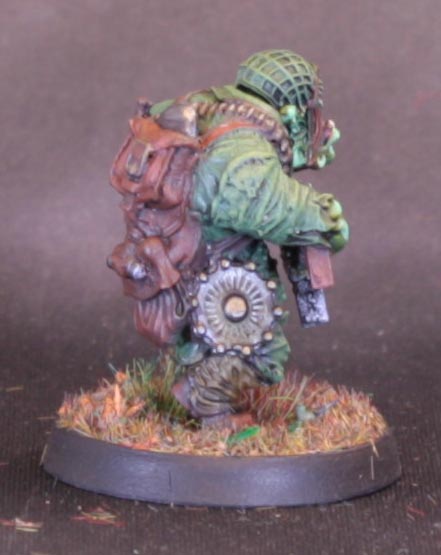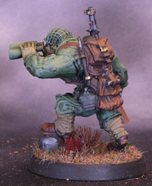 I chose to do the backpacks and gear in browns as if I did them in all the green that they actually should be, that would make for really samey minis. Green uniform, green gear, green skin…. I took some artistic license to create some contrast this way.