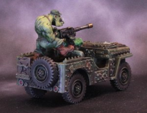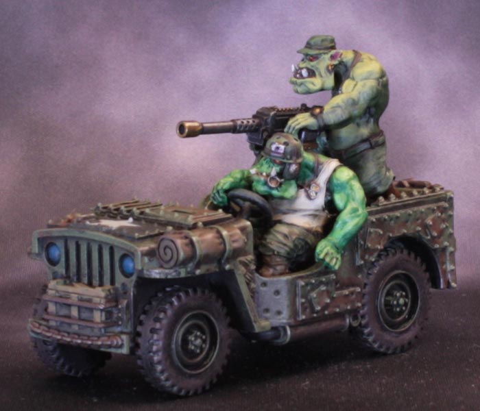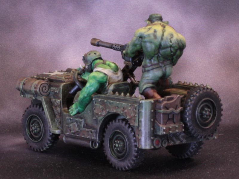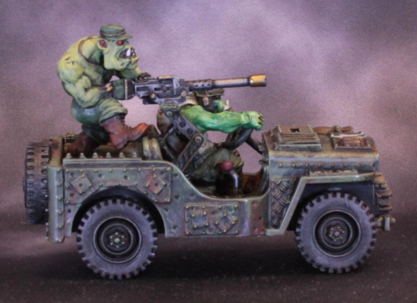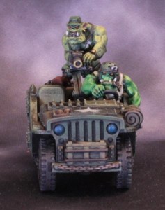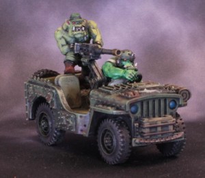 Being bought second hand, the shootaboyz arrived assembled and undercoated black, while the jeep was undercoated green. The other minis were bare metal and resin and are yet to recieve some paint. Which might not be too far off now that the ball is rolling…