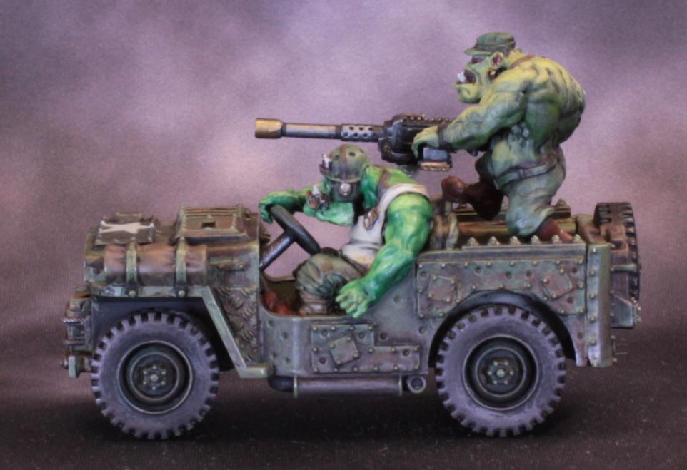 The polish company MaxMini held a kickstarter called “The Green Alliance” back in 2014. These were very good looking Space Orks for 40k with WW2 US-inspired equipment, uniforms and vehicles. I did not pledge at the time, I honestly don’t remember why anymore. Maybe it was too expensive for me just then, maybe it had red flags up the wazzoo. Maybe something else entirely.