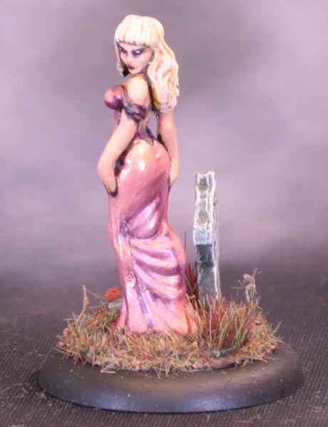 I painted the dress with Green Stuff World Metalcolor Cæsar Red (a metallic deep red) and Reaper Rose Gold, a metallic pink. I find these colours work very well together.