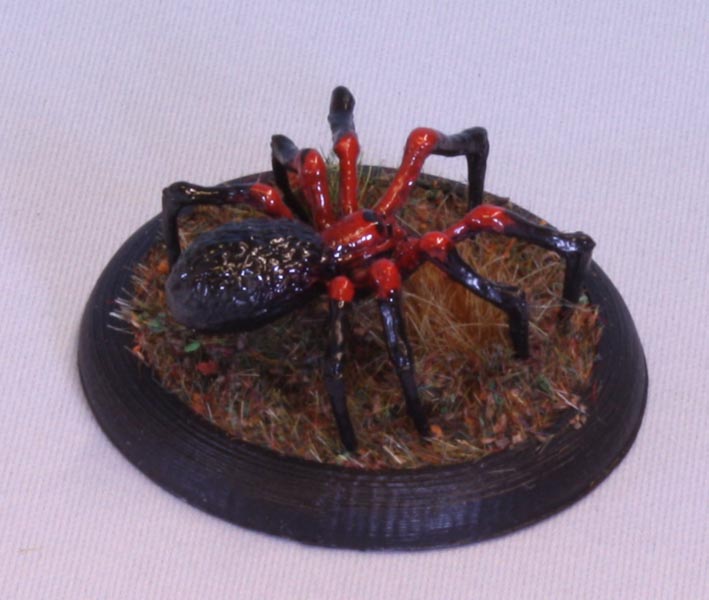 The colour scheme is inspired by a real spider, the Australian (…because of course Australian!) Ambicodamus Crinitus, aka the Red and Black spider, Imaginative naming there.