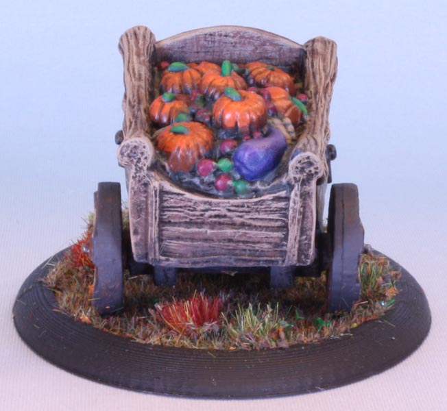 So Ser Francis here is pulling a cart full of autumnal produce such as pumpkins, apples and a large aubergine.