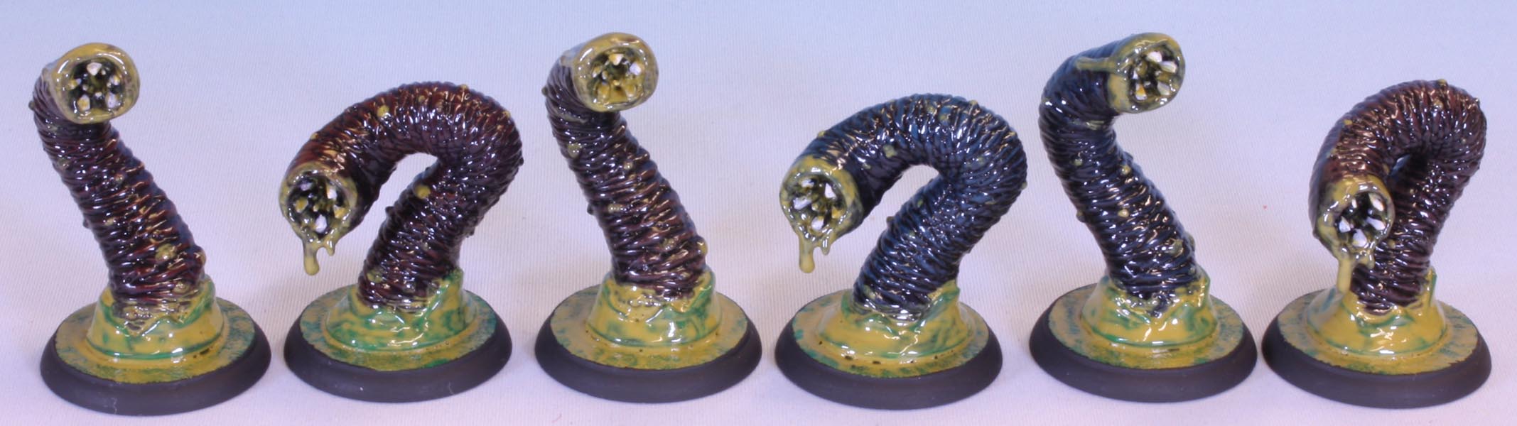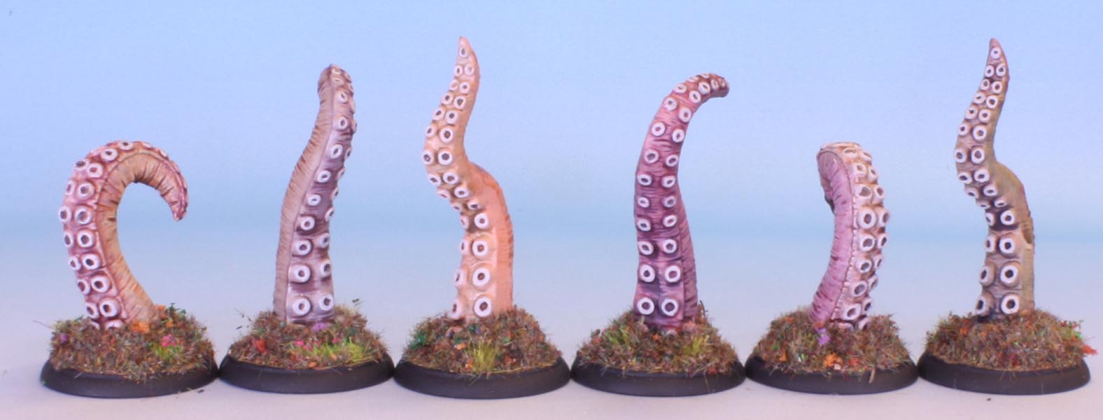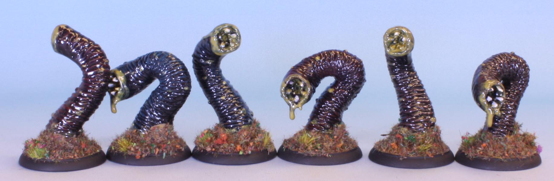 I was not happy with the green slime bases on the various tentacles I recently painted. So I have redone them in my default autumnal flockmix. The flock covers the lump at the base which I did not like the look of.
