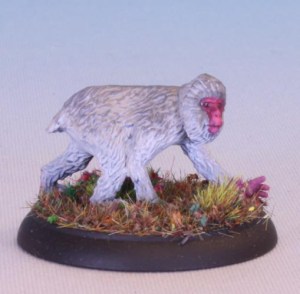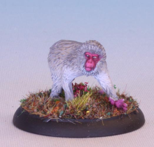 An Ally model from Shadows of Brimstone: Forbidden Fortress. Classic Japanese Macaque, the eponymous Snow Monkey. This was a five minute paint job just to get started on the Forbidden Fortress models.