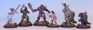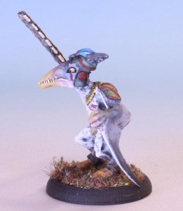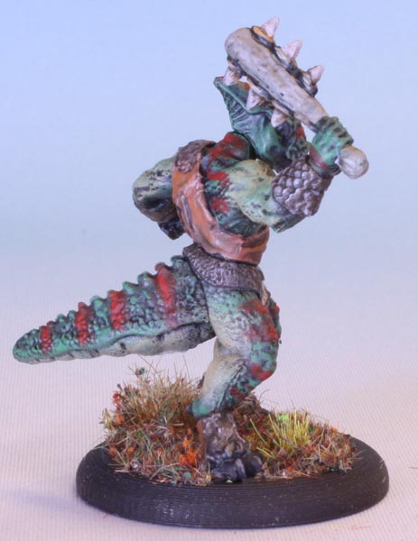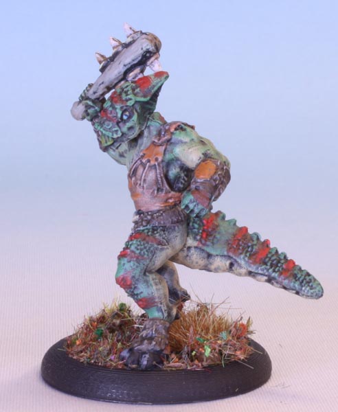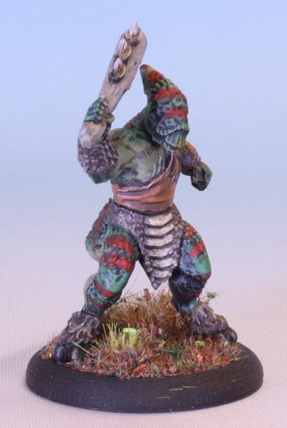 The last couple of weeks have been full up with work and not much time for other things. I have been plonking away at these just a little at a time since my last post about a fortnight ago. These are member of the Sauroid Tribes according to the flavour text. (Assuming the “Sauriod” is a typo, and the later “Sauroid” is the correct name). Each of “these warring tribes are highly territorial and will brook no trespassers on their sacred lands”, and they constantly battle both amongst themselves and with the warlike Jade Fire Clan orcs.