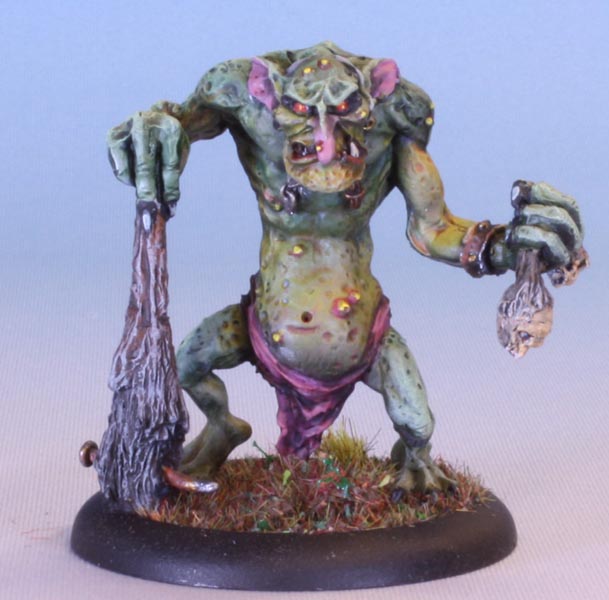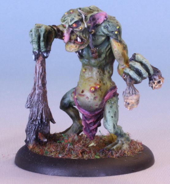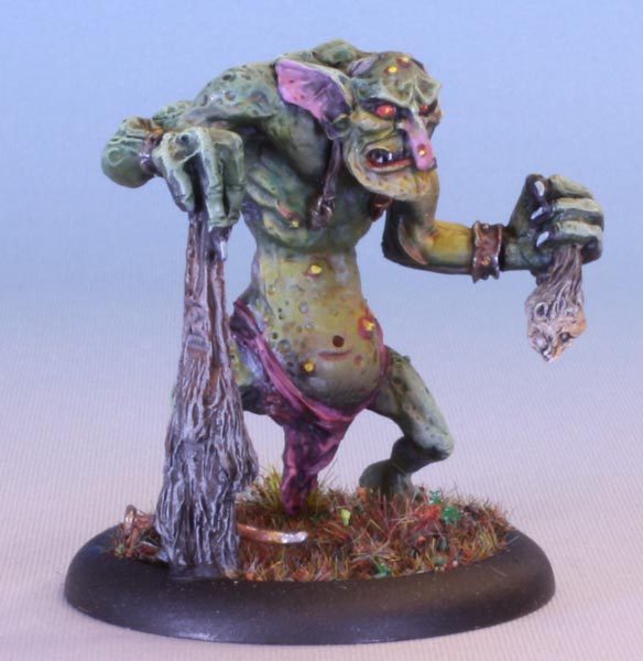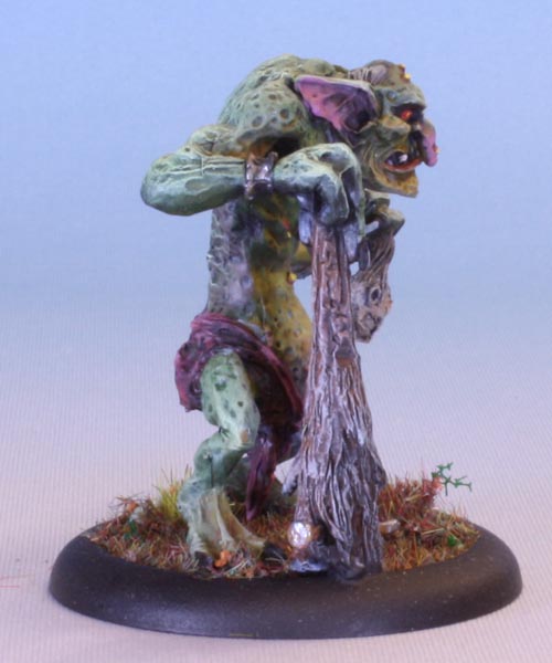 The troll is cast in resin as opposed to the metal most other Crooked Claw minis were made of. I put in on a 40mm base.
