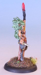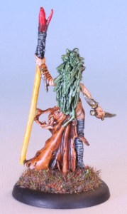 I mean, it went so fast I don’t even remember quite which colours I used here. Was it gulliman or darkoath flesh? Was is snakebite or gore-grunta fur? Camo or militarum on the hair? I know it was Templar Black on the leggings, and Iyanden Yellow on the staff. The rest eludes me. This was a fast paint job.