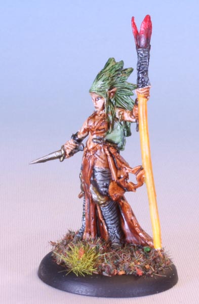 So I pulled one out more or less at random. I thought what I pulled was some sort of lady druid. Turned out she was a “Dark Elf Wizard”. Right right.
