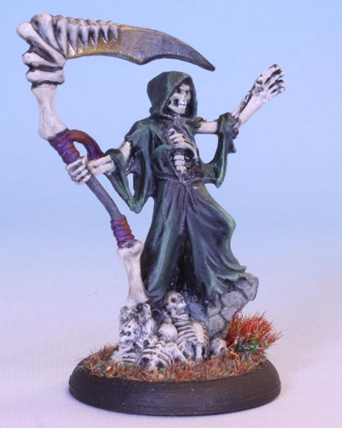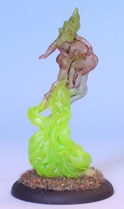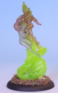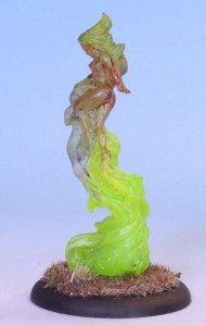 This mini is made in translucent green material. The key to painting translucents is to undercoat them with clear varnish. I used Army Painter Anti-Shine matt varnish spray for this one, back in the day.