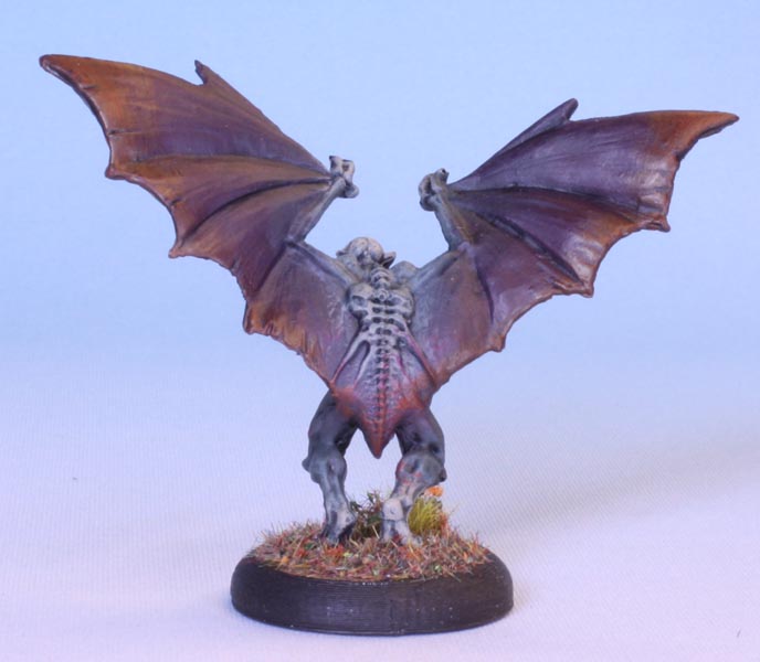 This is the second one of these I have painted, the first one being featured in a LAF painters league entry. I chose to paint this differently, with dark purple to red on the wings.